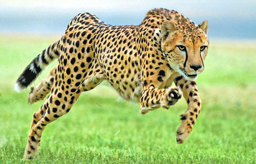 A gepárd nagyon izmos, bár a teste karcsúnak és törékenynek tűnik. Mellkasa domború, míg a hasa mélyen behúzott. Kis feje, rövid orra és magasan ülő szemei, kis kerek fülei és a maximális oxigénbevitelhez nagy orrlyukai vannak. A gepárd szőre sárgás színű, fekete kerek pettyekkel, amely segíti az álcázásban. Az orra két oldalán fekete 'könnycsepp'-szerű minta húzódik lefelé a szemétől a szája sarkáig. A felnőtt állatok súlya 40–65 kg között mozog, testhossza 112–135 cm, míg farka elérheti a 84 cm-t is.
